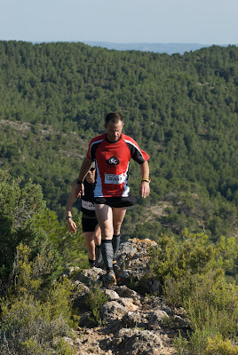 Entrant ja al detall de la cursa hem començat amb gairebé 3 km de neutralitzada que ha servit per llevar les tensions de la sortida, escalfà motors i pregunta per la família dels que en poc es convertirien en contrincants a abatre... (de bon rotllo). Els primers kilòmetres amb un suau desnivell entre senders enboscats, barranc i camins ens han portat a la primera pujada forta amb mini ferrata inclosa per coronar el Pic de l’Àguila (485m – Km10 de cursa) on hi havia realment una vista fantàstica com ja anunciava l’organització.